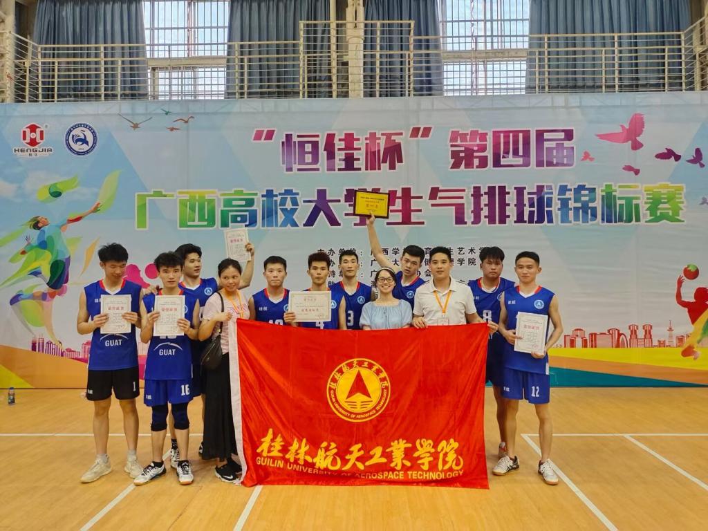 我校男子排球代表队积极备战,经过2个多月的艰苦训练,努力提升技战术水平,在比赛中充分发挥了敢打敢拼、奋勇向前的体育精神,展现了桂航学子不忘初心、蓬勃向上的精神风貌,以全胜的战绩获得了冠军。