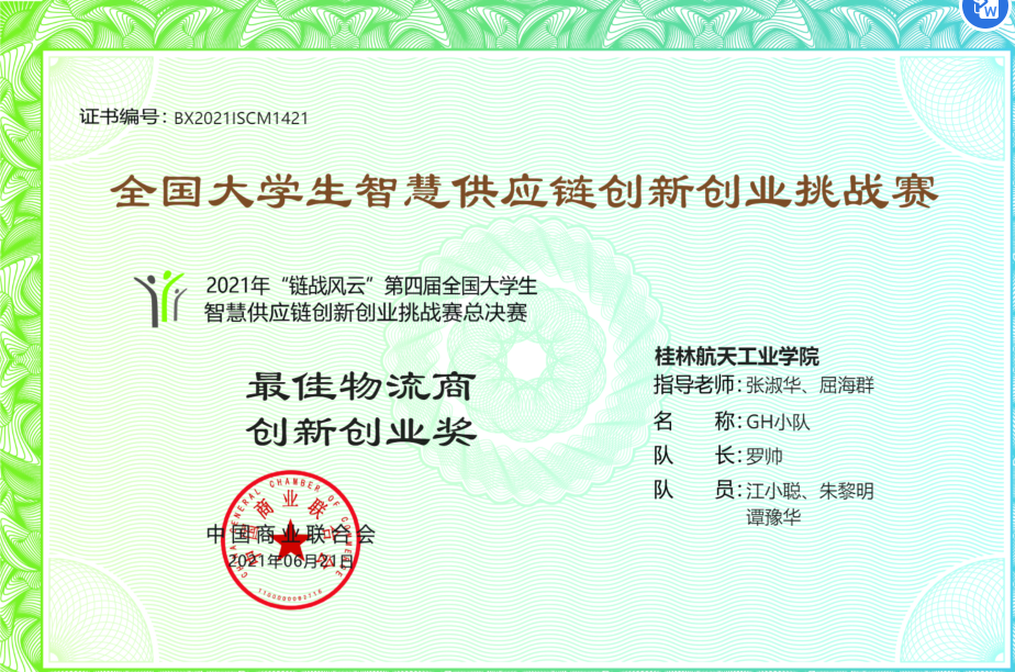 6月17至18日,“链站风云”第四届全国大学生智慧供应链创新创业挑战赛全国总决赛以网络竞赛的方式举行。大赛由中国商业经济联合会主办,旨在深入贯彻落实《国务院关于积极推进供应链创新与应用的指导意见》(国办发[2017]84号)精神,推进高校创新创业教育改革,培养多层次物流与供应链人才。