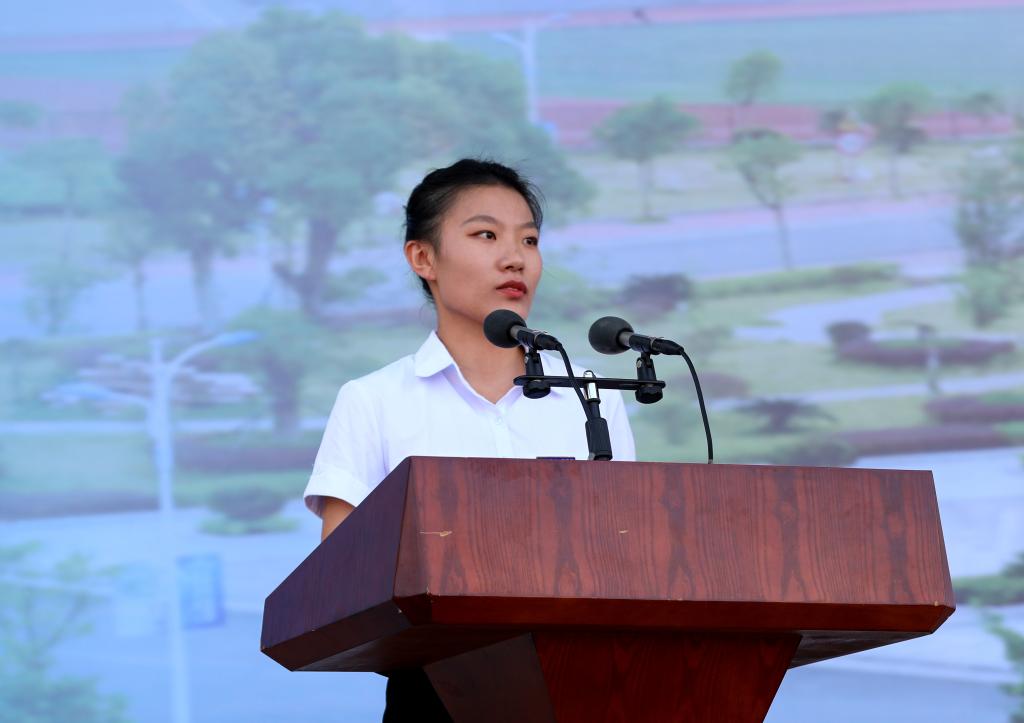 新生代表—机电工程学院2021级材料成型及控制工程专业平心怡同学表达了自己初到学校的激动之情,并许诺将脚踏实地,积极过好大学生活的每一天,不负青春、不负韶华,做新时代的追梦人。