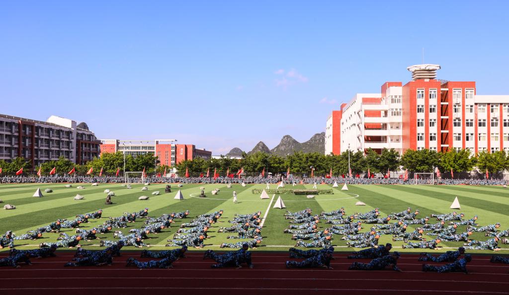 9月25日上午,我校2021级新生军训会操典礼在南校区田径运动场隆重举行。学校校长易忠、党委副书记刘迎春、学生军训团团长钟建军、学工部、教务处、武装部、校团委负责人及各二级学院党总支副书记出席了军训会操典礼。典礼由武装部负责人主持。