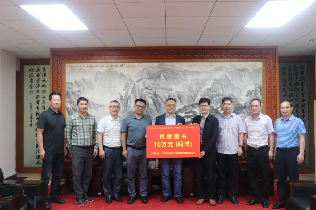 5月10日,广西师范大学出版社集团独秀书房公司董事长施东毅一行来我校捐赠图书。学校校长吴尽昭,党校办、教务处、图书馆相关负责人参加了图书捐赠仪式。