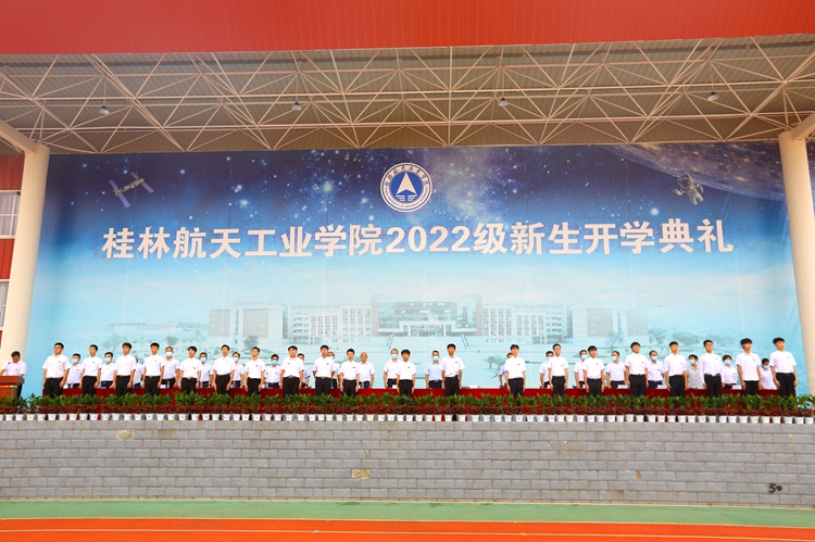 仪式上,2022级全体新生进行宣誓:发扬“艰苦奋斗、自强日新”的桂航精神,秉承"尚德、博学、慎思、笃行”的桂航校训,忠于祖国,热爱航天;遵纪守法,诚实守信;严慎细实,守正创新;勤学苦练,唯实求新;明礼修身,友爱互助;强健体魄,向上向善;朴实无华,吃苦耐劳;追求卓越,勇于攀登;传承航天精神,做新时代的“新青年”!