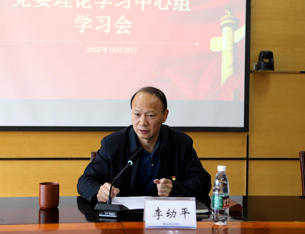 10月28日上午,学校党委理论学习中心组在南校区飞天楼517会议室召开集中学习会,学习会由校党委书记李幼平主持,校党委理论学习中心组成员参加学习。