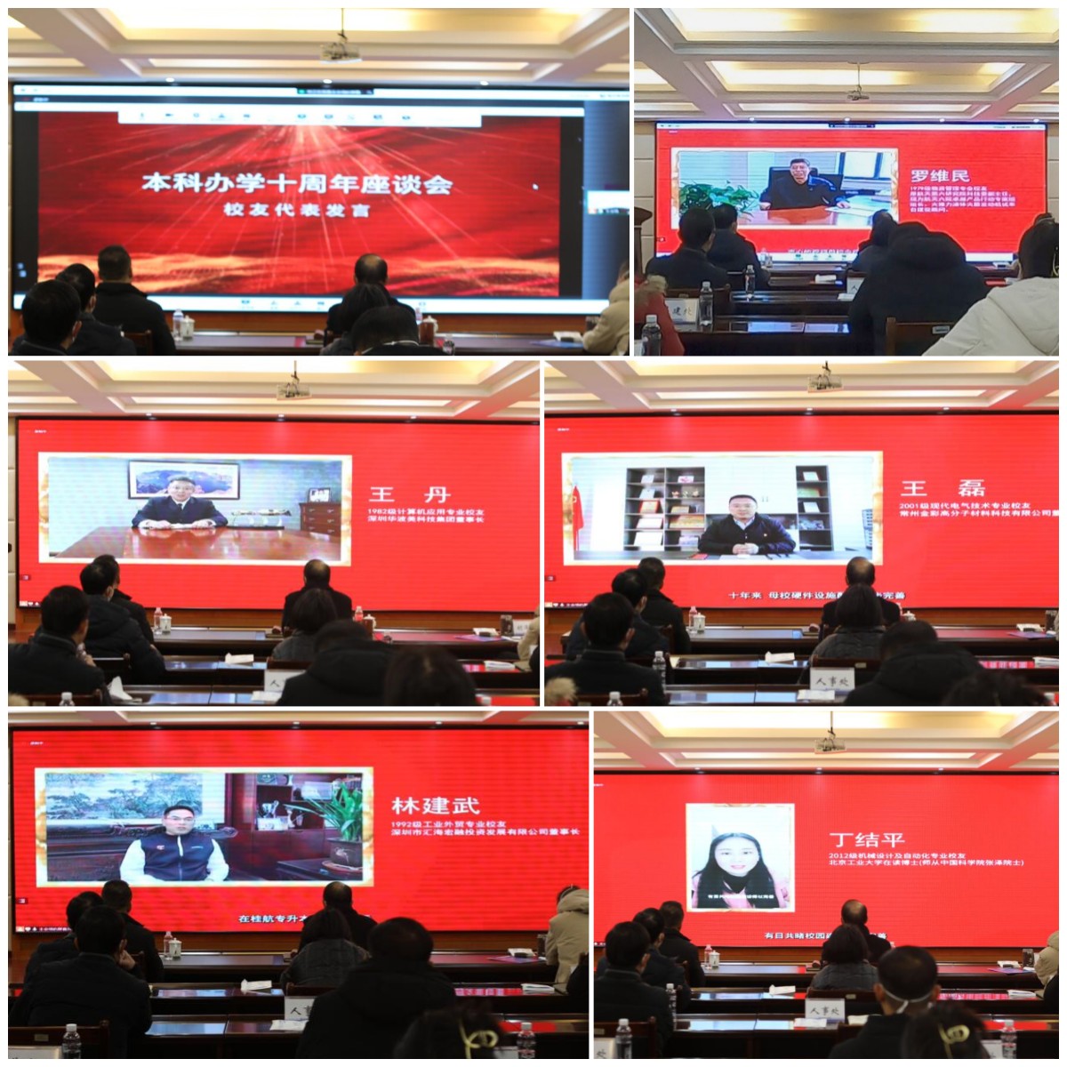 各地校友会代表,1979级物资管理专业罗维民校友、1982级计算机应用专业王丹校友、1992级工业外贸专业林建武校友、 2001级现代电气技术专业王磊校友、2012级机械设计及自动化专业丁结平校友纷纷录制了视频,向母校送上美好祝福。
