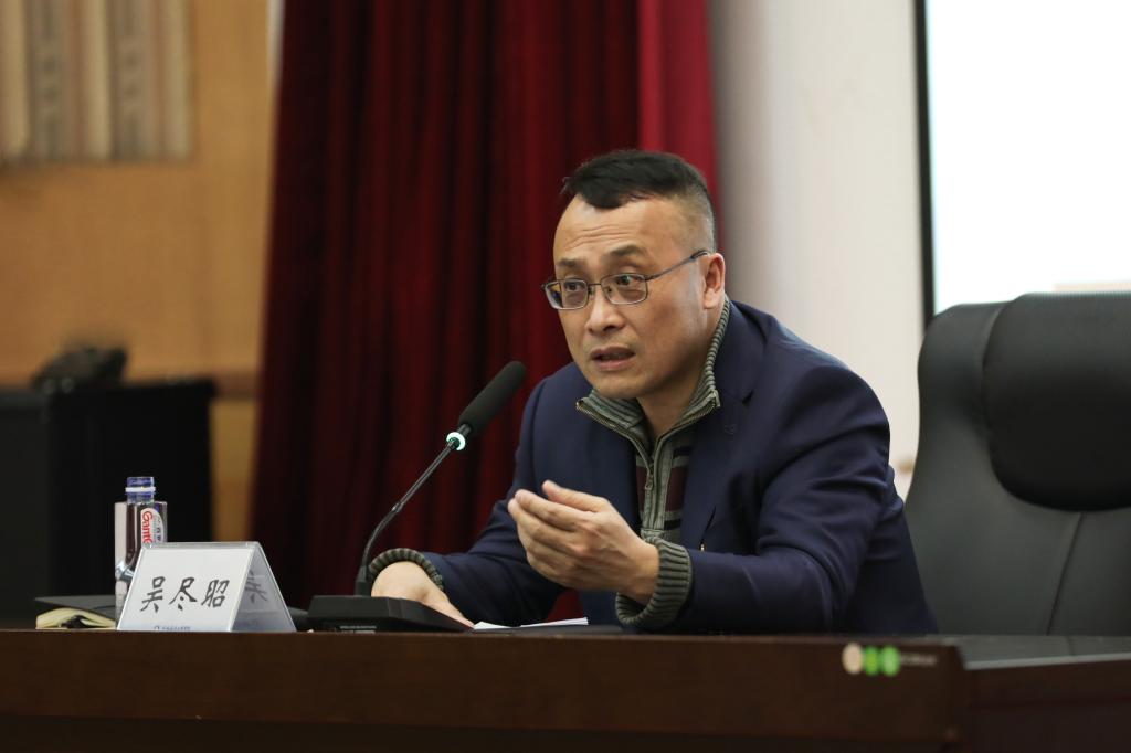 吴尽昭就新时代青年如何扎根于伟大的历史进程,对同学们提出四点希望和要求,一是要厚植爱国情怀,奠基复兴伟业;二是要增强信心斗志,锤炼过硬本领;三是要在力行实践中做实干家;四是要在桂航发展中把握机遇。