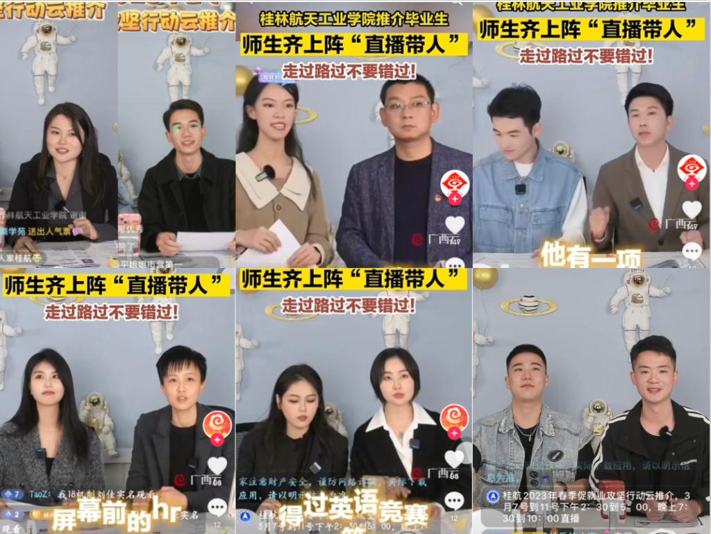 汽车工程学院航V车队指导老师闻港直言:作为非专业主播,在镜头面前还是比较紧张的,虽然参加直播培训时学习了很多直播技巧,同但是也花了许多时间与助播磨合,争取把直播效果提升,向大家展现桂航师生风采。