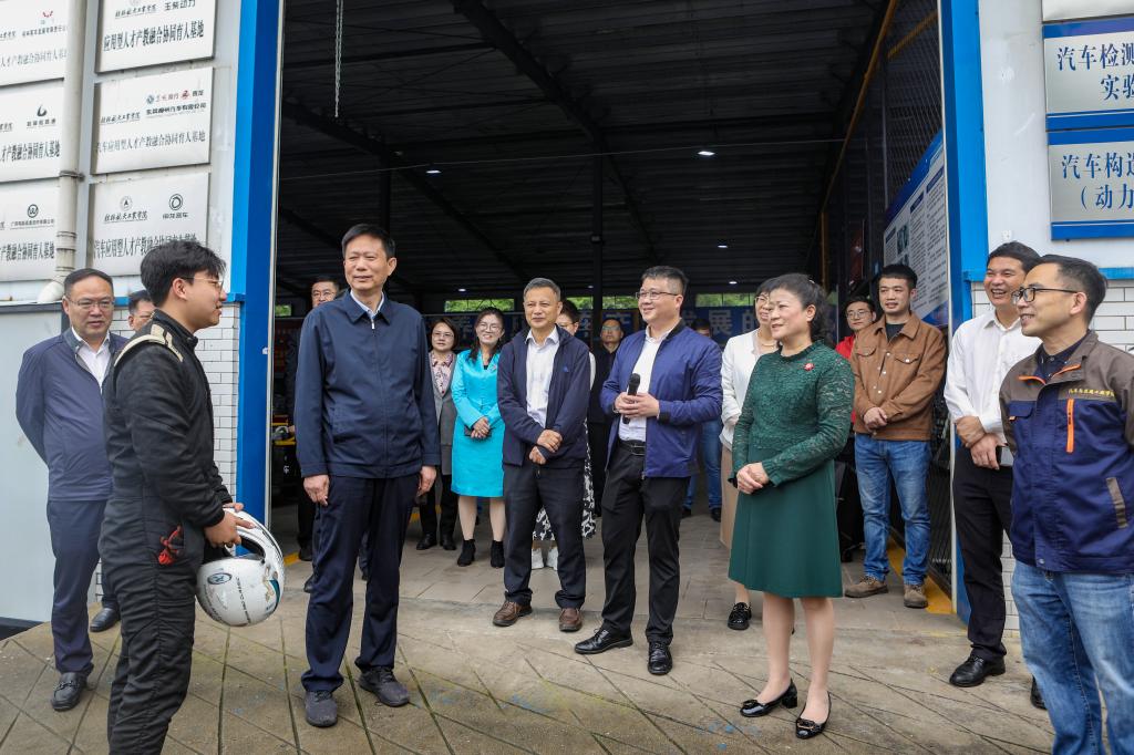 调研组一行还观看了由我校师生独立设计制作的“航V”大学生方程式赛车表演,与同学们进行了亲切交谈,深入了解我校学生学习实践情况,鼓励他们再接再厉刷新佳绩。