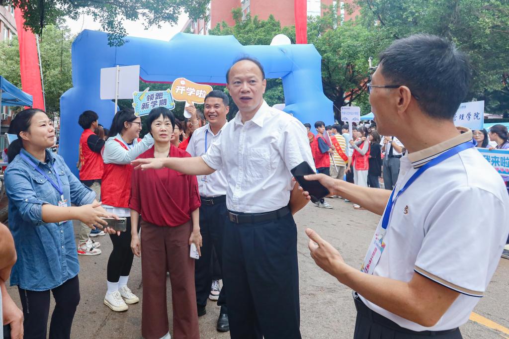 9月14日起,我校陆续迎来2023级新生。在尧山细雨中,校党委书记李幼平,校党委副书记、校长吴尽昭,党委副书记、纪委书记吴江萍一行前往南北校区各学院迎新点、火车站等地检查新生报到迎接情况。
