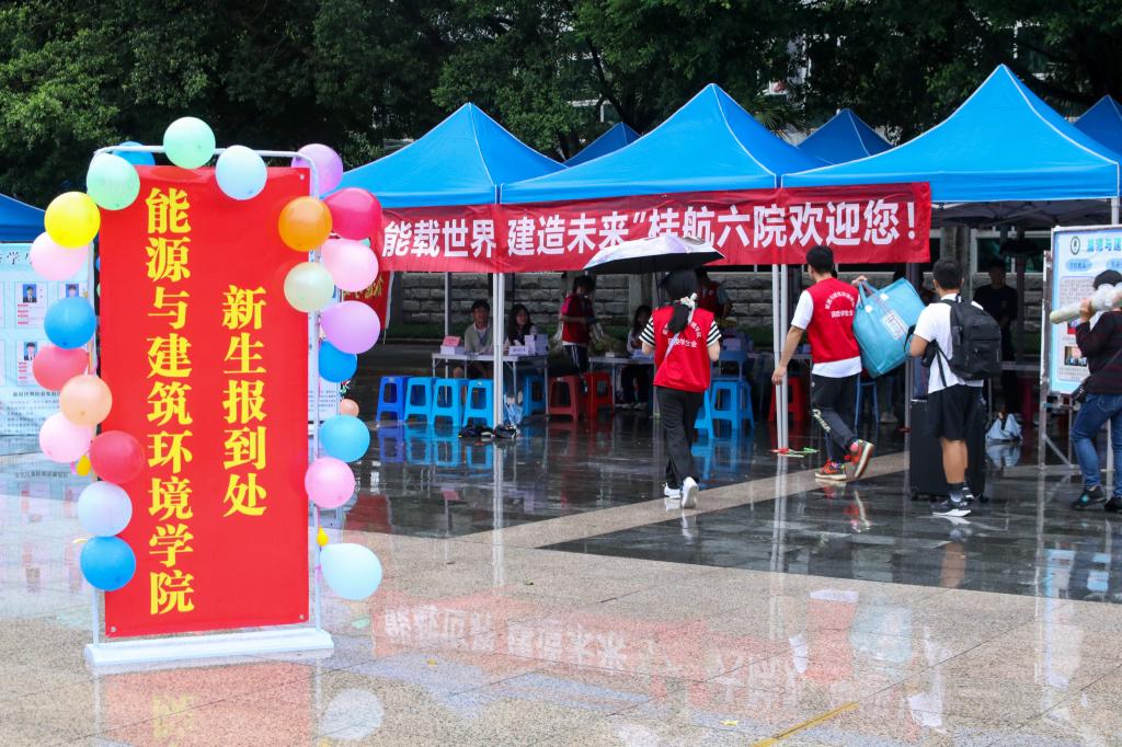 据悉,为保障本次迎新工作顺利开展,学校层面召开专门会议布置相关工作,校学工部(处)、校团委及各二级学院共设置校内迎新点位20个,桂林火车北站、南站、西站设置迎新点位3个,1000多名志愿者响应号召投入新生迎接工作。截止发稿时,新生已报到四千五百余人,保卫处为1800余车次进行引导,食堂为6000余人次新生及家长提供了餐饮服务。