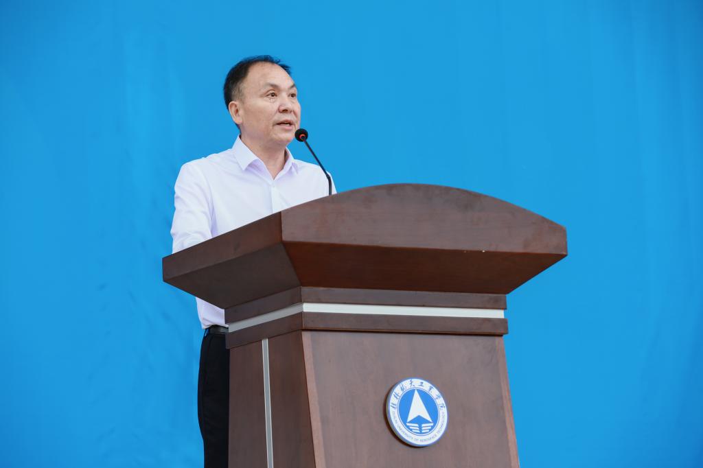 校长吴尽昭发表题为《赓续桂航精神 做有为桂航人》的讲话,他表示,从今天开始,新学子们将在美丽的桂航展开新的人生画卷,领悟“尚德、博学、慎思、笃行”的桂航校训,践行“艰苦奋斗 自强日新”的桂航精神。他希冀着桂航学子在四年大学生涯中能够尽情体验知识获取的乐趣、能力锻造的欣喜、思维碰撞的奥妙、人格塑造的美好,早日成为德才兼备的国家栋梁。在同学们开启人生崭新阶段之际,他向新生提出四点希望:一是志存高远,树报国之志,做有理想的桂航人。少年应有鸿鹄志,当骑骏马踏平川。二是立德修心,塑人格品性,做敢担当的桂航人。始终保持积极的人生态度、良好的道德品质、健康的生活情趣,坚决摒弃“躺平”心态,不做“摆烂”青年。三是求真笃定,炼过硬本领,做能吃苦的桂航人。温室大棚养不出参天大树,风雨磨砺方能成就松柏挺立。四是乐学善思,筑真才实学,做肯奋斗的桂航人。苍穹不负少年意,岁月不枉赶路人。以有理想、敢担当、能吃苦、肯奋斗的姿态,赓续桂航精神,不断完善自己最为独特的人生体验,在桂航成就更好的自己。