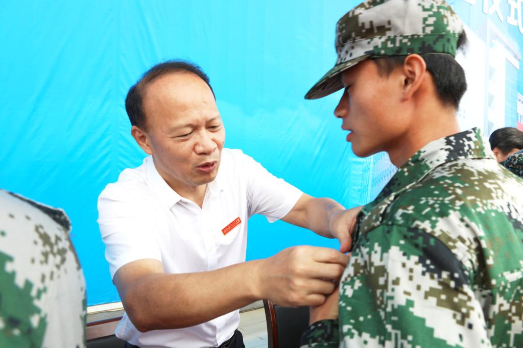 典礼上,全体校领导为2023级新生代表佩戴校徽。