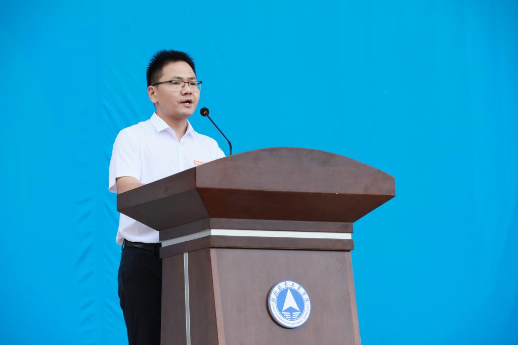 教师代表——机电工程学院熊中刚老师表示桂航的全体老师将尽最大的努力,为同学们提供优质的教育和帮助,帮助同学们掌握学习的方法和技巧。同时,桂航全体老师也将会引领同学们走向正确的道路,帮助同学们树立正确的人生观和价值观。