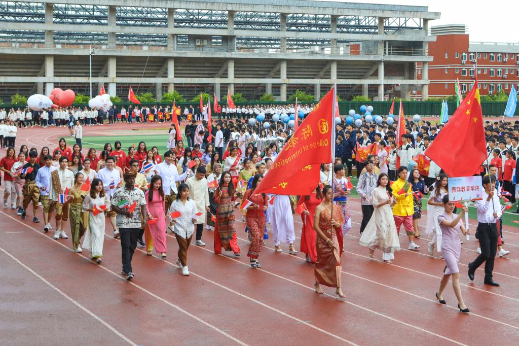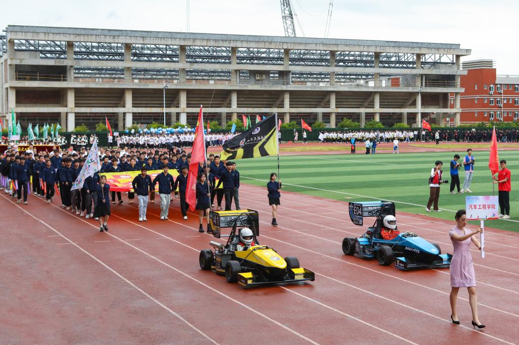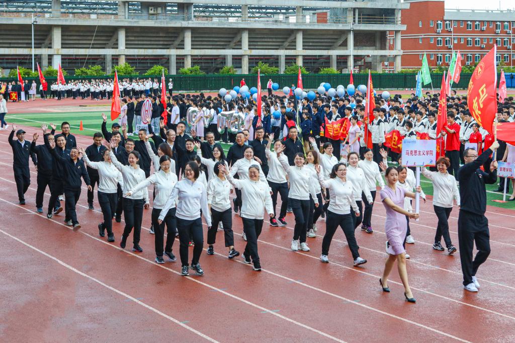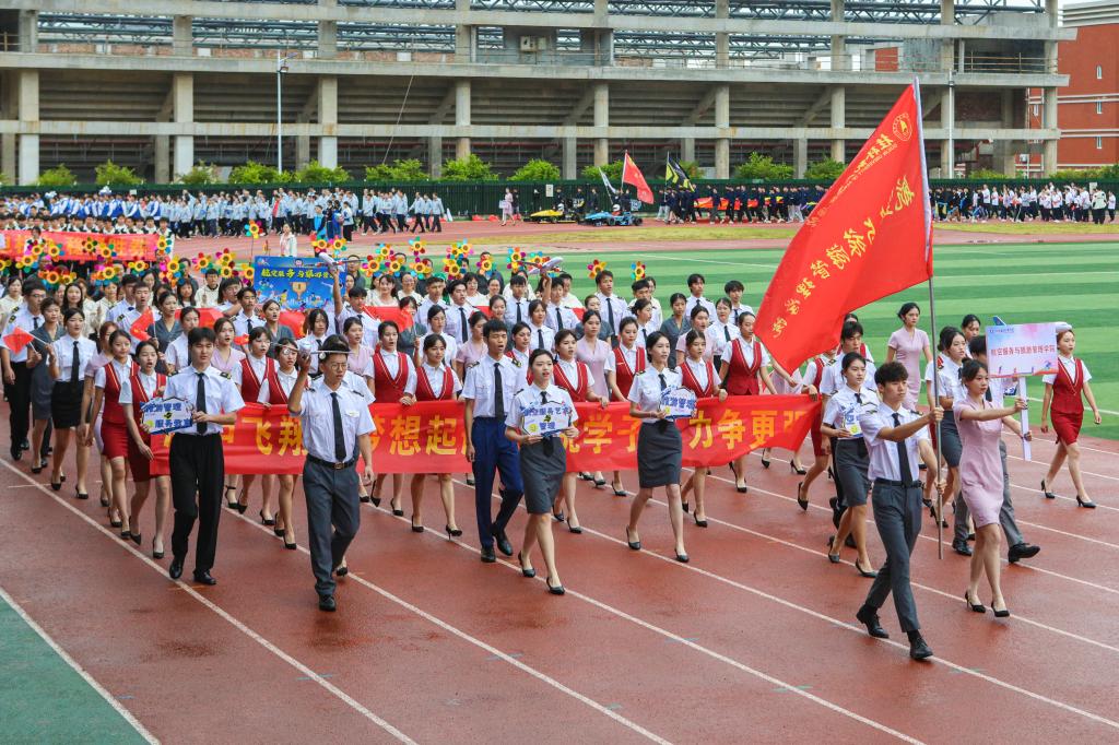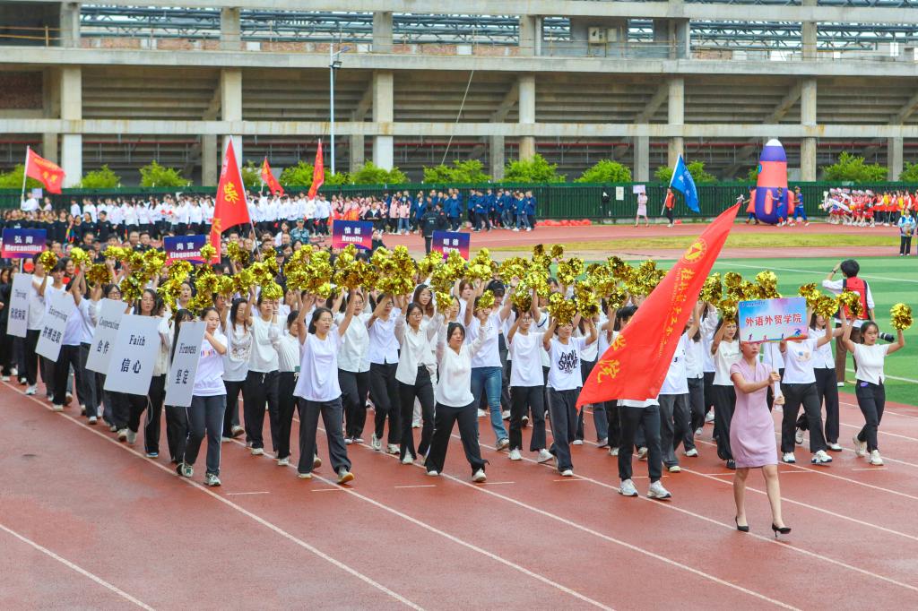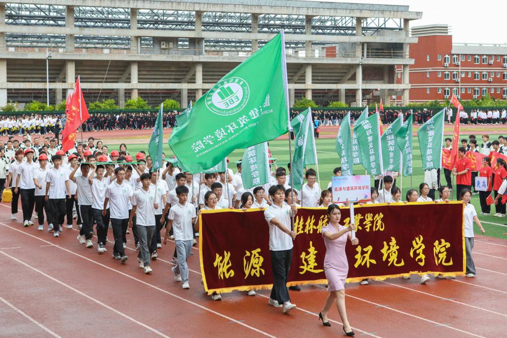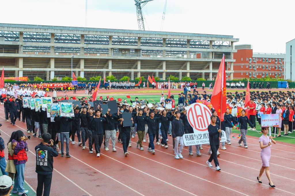 开幕式以精彩的大型团体操表演《青春有你》震撼开场。色彩艳丽的服装,欢快的旋律,同学们以朝气蓬勃的舞姿表达了他们对青春的热爱、对体育事业的热爱、对桂航的热爱,展现了我校的风采。开幕式沿用了与往年一致的入场仪式与院系展演相结合的形式,伴随着响亮的进行曲,来自不同院系和职能部门的方阵身着具有专业特色的队服,用新颖活泼、极具特色的表演和口号诠释着桂航人活力四射的体育精神,赢得全场热烈的喝彩声与掌声。