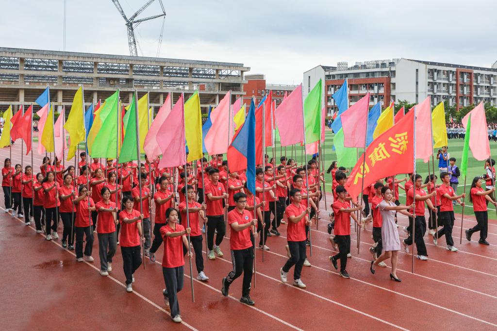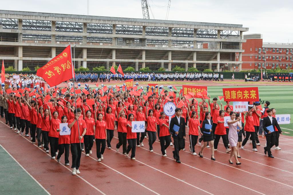 校长吴尽昭在致辞中对我校开展田径运动会表示热烈的祝贺,希望全校师生能积极参与各项体育健身活动,体验体育之美,享受运动之乐。自建校以来,学校始终重视学生全方位、多层面发展,不断丰富校园文化生活,促进了学生德智体美劳等方面全面发展,并预祝全体运动员在比赛中获得优异成绩,校运会圆满成功。运动员代表和裁判员代表分别宣誓,表示做到胜不骄,败不馁,弘扬更快、更高、更强的体育精神;严格遵守比赛规则,做到公平,公正,公开,争创佳绩,展现体育新风尚。