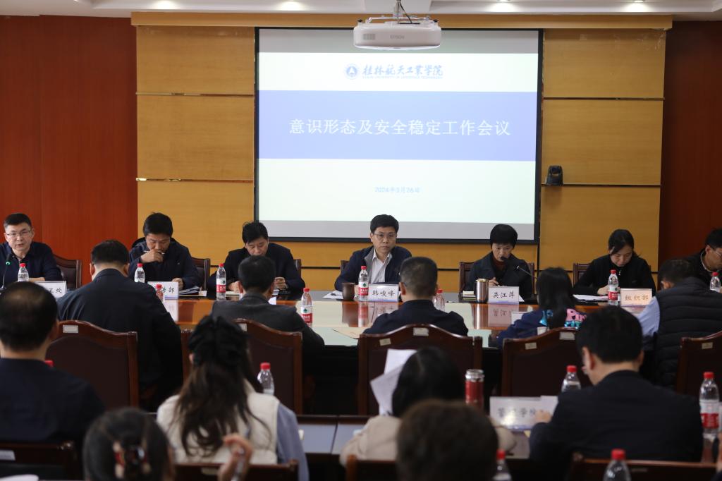 3月26日下午,学校在飞天楼517会议室召开2024年春季学期意识形态及安全稳定工作会议,学校党委书记韩峻峰,党委副书记、纪委书记吴江萍出席会议,校内各管理服务部门主要负责人、各教学单位书记及副书记参加会议。会议由吴江萍主持。