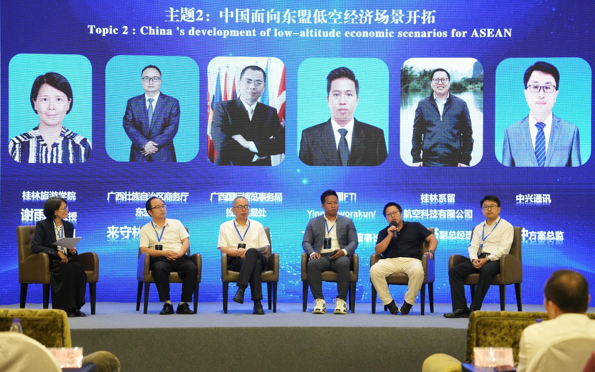 与会十一位嘉宾分两组围绕低空经济(低空旅游)场景开拓和中国面向东盟低空经济场景开拓2个主题进行了深入的对话交流与探讨。与会嘉宾结合各自领域的实践经验,分享了关于低空经济与低空旅游发展的创新思路和成功案例,为现场观众带来了一场思想盛宴。讨论环节中,各方代表积极建言献策,就如何突破低空经济发展瓶颈、提升低空旅游服务质量等关键议题展开了热烈互动。来自企业的代表们分享了在无人机物流配送、低空观光飞行等方面的成功经验,而政府部门的与会者则重点介绍了政策支持和监管体系的建设进展。此外,学术界与产业界的深度对话也为未来合作提供了新思路。