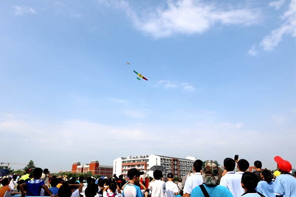 卢意文宣布比赛开幕。随后,我校机械工程学院大学生带来了精彩航模表演,纸飞机花式表演、穿越机拉烟表演、电动滑翔机拉烟表演、3D飞机以及仿生物模型表演等一系列高难度飞行展示,让现场观众连声称赞。