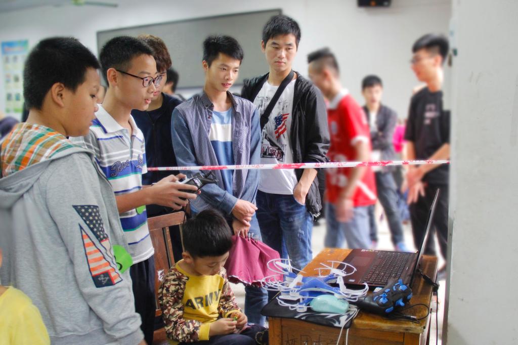 青少年多旋翼无人机竞技赛在北校区招聘大厅举行,虽然他们都是青少年,但操控四旋翼飞行器的技术已经比较成熟,在激烈的比赛后,赖泽霖同学获得了冠军。同时,比赛旁还放有无人机模拟器供感兴趣的同学进行模拟飞行的体验。固定翼竞技赛在南校区风雨足球场举行,固定翼飞行器的操作较难,参赛选手们争分夺秒,仍然保持细致操作,比赛进行得异常激烈。最终由姚俊德同学凭借稳定的发挥摘得该项目冠军。