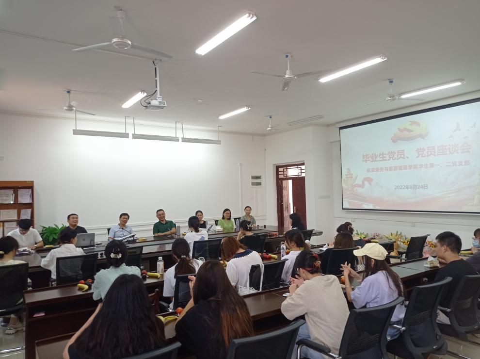 6月24日,航空服务与旅游管理学院2022届毕业生党员、党员座谈会在探天楼C207会议室顺利召开。学院负责人及各教研室主任、教师代表参加座谈会,2018级毕业学生党员代表,第一、第二党支部在校学生党员共同参加。