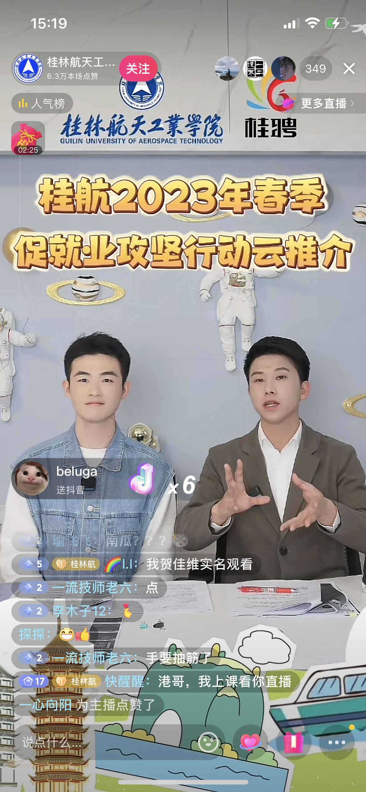 为打好2023届毕业生春季就业工作攻坚战,促进我校学生快就业、多就业、稳就业,校党委宣传部、学工部(处)和各学院协同发力,经过培训带岗主播,动员毕业生广泛参与、筛选简历,3月7日下午,我校首场抖音促就业云推介直播活动成功举办,获得点赞超10万余次。