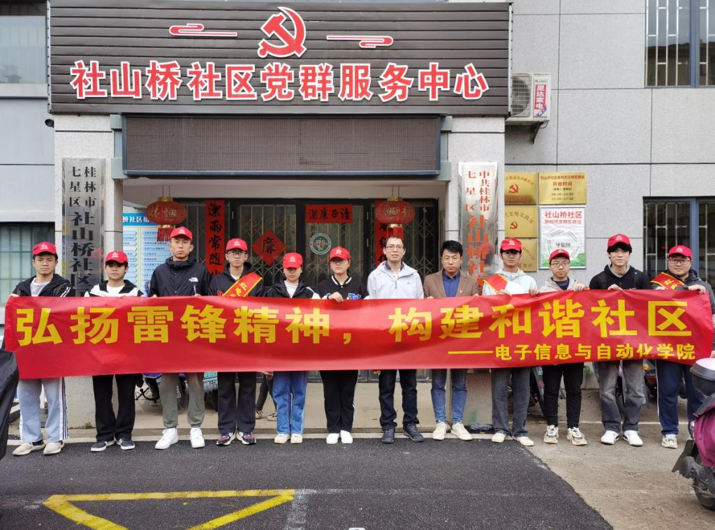为深入学习宣传贯彻党的二十大精神,落实团中央关于大学生社区实践计划的统一部署,3月25日,电子信息与自动化学院学生党支部、团委学生会和电子爱好者协会成员结合“红电先锋”党建品牌,走进桂林市七星区社山桥社区开展“弘扬雷锋精神,构建和谐社区”实践活动。