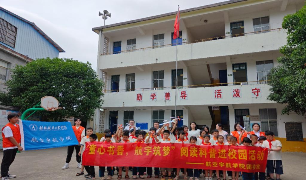 6月1日,依托校团委红色筑梦立项项目,航空宇航学院科普小分队来到灌阳县新圩镇共耕村共耕小学开展了“童心书香,航宇筑梦”阅读科普活动。本活动依托学院航天科普文化节,从航天科普的角度带领共耕村的小朋友们领略航天文化,感受阅读魅力,激发小朋友们对蓝天的向往,激发其敢于探索、勇于创新的热情,在他们心中种下一颗航天梦的种子。