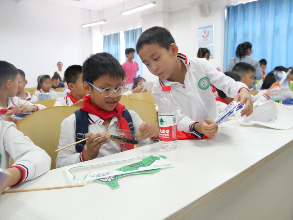 除了参观学习所外,同学们踊跃参与各项科技兴趣活动,在风雨足球场观看航模飞行表演时,同学们欢呼雀跃;在航空航天科普室体验飞机模拟驾驶,小朋友们专心致志;在教室手工制作“双色猛虎”橡筋动力伞降直升机时,同学们开心自豪;在青春广场亲手放飞自己作品橡筋动力伞降直升机的时候,小朋友们激情四射。