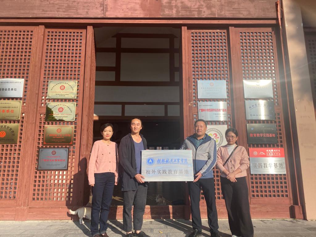 在桂林天然胎漆器有限公司,桂林漆器制作技艺(区级)代表传承人王伯杨先生就公司经营的工艺美术品、礼仪用品制造、批发、销售等业务进行了详细介绍,之后双方就人才培养、校企合作、产学研创等方面进行了深入探讨和交流、达成协议并挂牌。桂林天然胎漆器有限公司位于桂林园博园内,2018年,桂林漆器制作技艺入选第七批自治区级非物质文化遗产代表性项目名录。