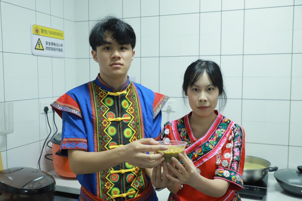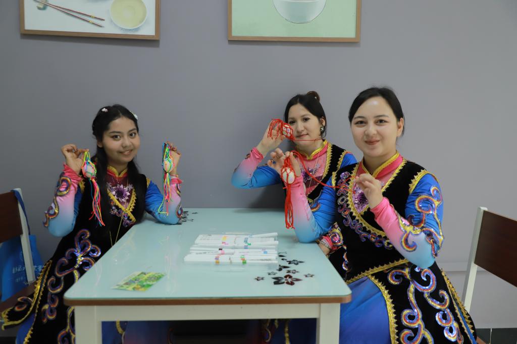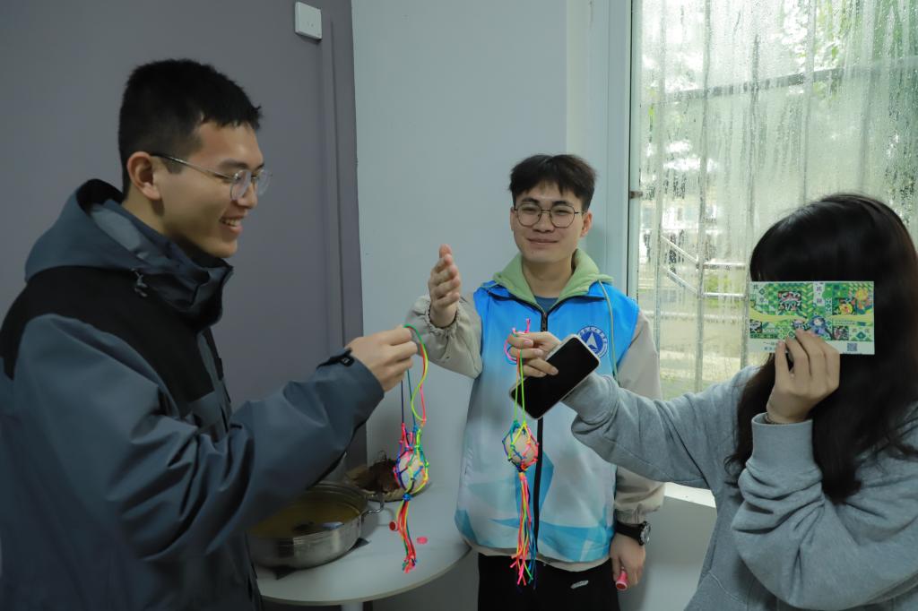 仪式结束后,“一站式”社区开展了丰富多彩的“三月三”传统文化共享共融共促活动,包括“画、碰彩蛋”“抛绣球”“拍照推文”等挑战积分项目以及“国风汉服”“以茗会友”“灯笼制作”等体验内容。学生代表们在共享厨房里还烹饪了带有民族特色的各类美食。在欢乐、友爱和谐的氛围中,大家就不同民族的风俗文化进行交流互动,传承了中华优秀传统文化,更增强了铸牢中华民族共同体意识的思想自觉和行动自觉。
