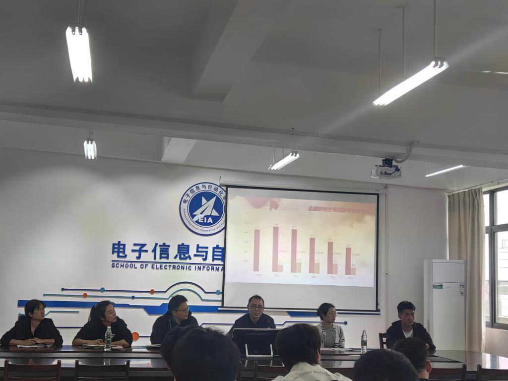 为充分调动学生的考研积极性,帮助学生了解考研形势,明确考研目标,4月18日,电子信息与自动化学院在启天楼A505召开2025届毕业生考研动员会。