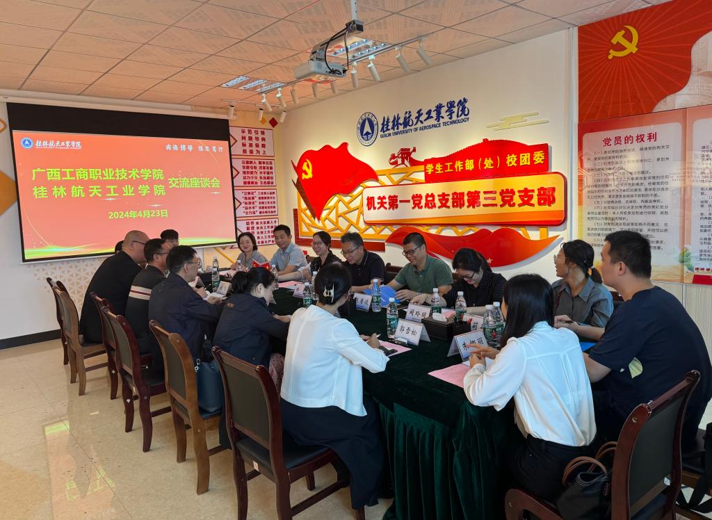4月23日,广西工商职业技术学院学工部部长林雯一行来校调研,我校学工部、相关学院负责人和相关工作人员在飞天楼533会议室参加座谈交流。