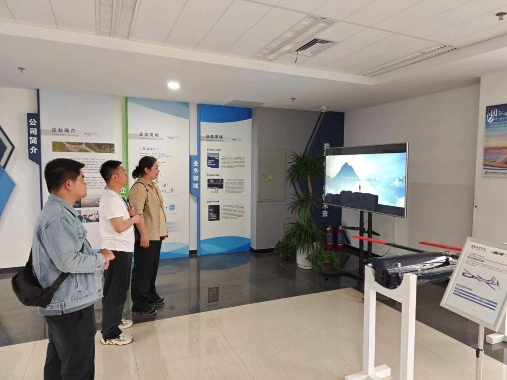 随后陈欢一行来到羚控科技展厅,共同观看了企业宣传片,参观了企业多品类无人机展品,包括管式发射蜂群无人机、复合翼垂起无人机、固定翼无人机,系留多旋翼无人机等。