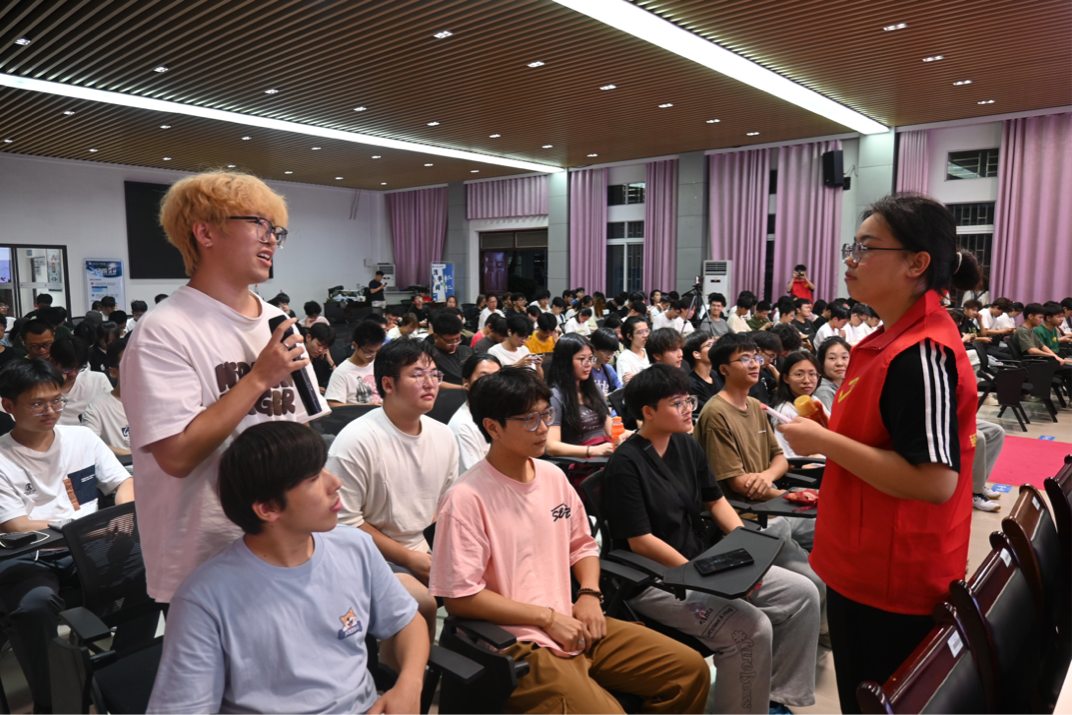 产品推介环节,宣讲团成员向大家介绍了延安的苹果、小米酥、核桃和狗头枣等特产。宣讲团还精心准备了特产小礼包,设计了互动答题环节,吸引同学们积极参与。