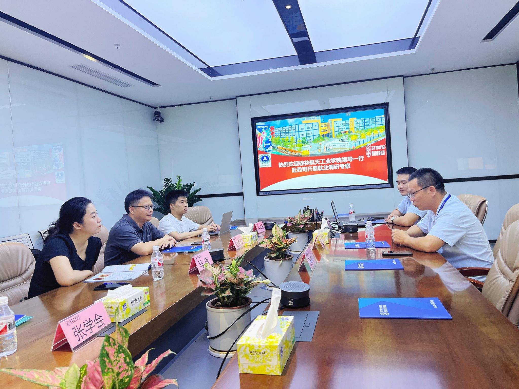 随后,调研组参观走访了思榕智能装备有限公司。座谈会上,公司负责人介绍了企业的用人需求及未来规划。电子信息与自动化学院相关负责人介绍了学院基本情况和专业布局,并表示对于企业的用人需求大力支持。双方一致表示,校企合作,互利共赢。