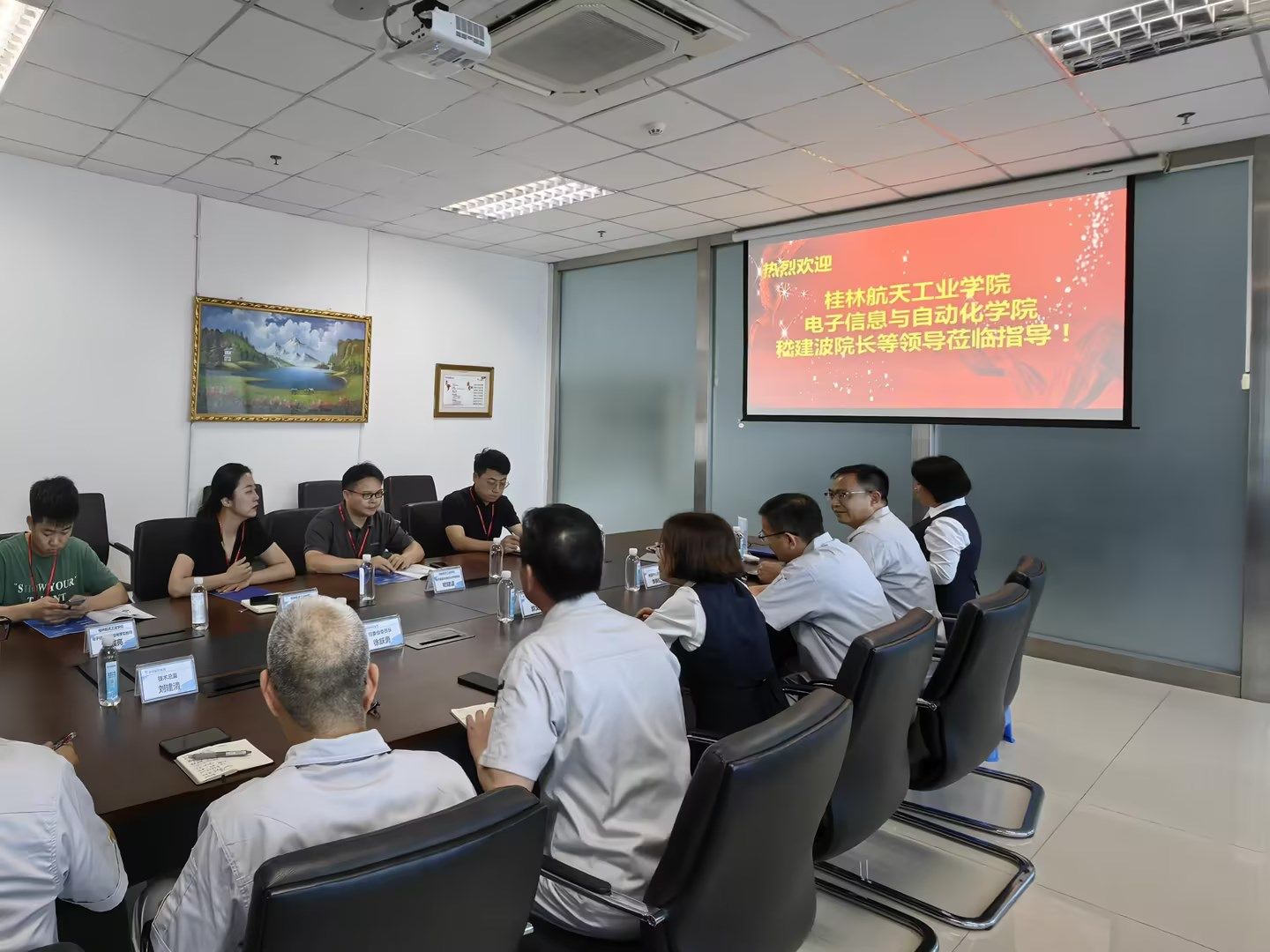 技研新阳有限公司总裁郭文英对调研组一行的到来表示热烈的欢迎,并简要介绍了集团基本情况。她表示,电子信息与自动化学院的相关专业和集团的产业关联性强、契合度高,为双方加强校企合作,推进产教融合提供了良好基础。电子信息与自动化学院相关负责人对企业能够为学院学生提供就业岗位表示感谢,并就今年学院的毕业生情况作了详细介绍,希望能够继续在学科建设、专业发展等方面进一步充分发挥各自优势,实现学院与企业的双向赋能、双向服务、同频共振。