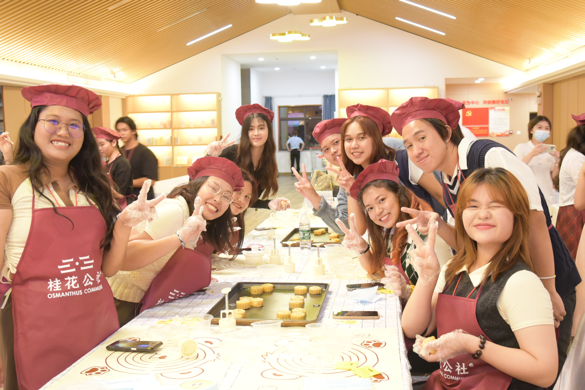 在手工DIY月饼体验厅里,留学生们认真观摩学习了月饼制作过程,在专业师傅的指导下,大家专注地揉面、包馅、压模,每一步都充满了新奇与乐趣。从莲蓉到五仁,各式馅料在各国留学生们灵巧的手中变幻成精美的月饼,大家相互协作,其乐融融,共同分享这份来自异乡的温暖与关怀,增进了彼此之间的友谊与理解。留学生们沉浸式体验了中国传统美食的制作流程与工艺,不仅让他们亲身感受了中国传统节日的独特魅力,更深刻理解了月饼背后所承载的团圆、和谐与美好的寓意。