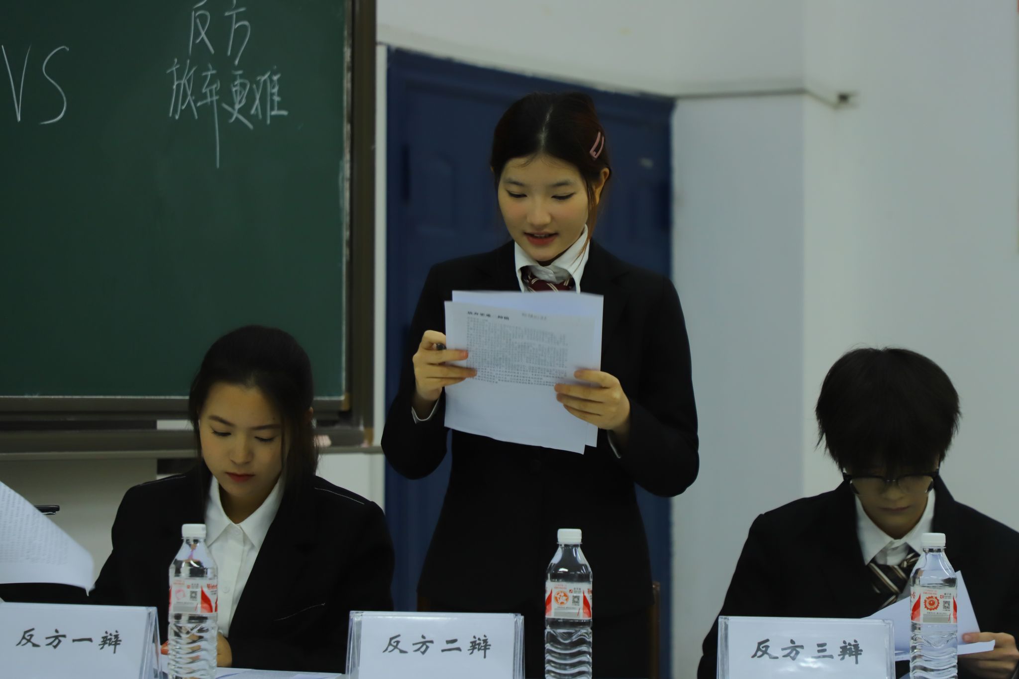 自由辩论环节堪称赛事“高光时刻”,双方辩手思维高速运转。正方凭借犀利言辞频频发难,抛出一连串尖锐问题,试图撕开反方防线;反方则依靠凌厉气势、敏捷反应,巧妙拆解正方攻势,以精妙思辨借力打力、绝地反击。你来我往间,金句迭出,诸如 “坚持是逆水行舟,可放弃是亲手推翻驶向彼岸的船,个中挣扎,谁又能轻言不难” 等妙语,引得台下观众掌声、惊叹声此起彼伏,现场气氛被推向沸点。场下观众同样热情高涨,在互动环节积极参与讨论、踊跃提问,为紧张赛事注入别样活力,近距离感受思维碰撞的魅力。在这场智慧与口才的盛宴中,观众们沉浸于双方辩手的精彩交锋,赛后仍回味那些发人深省的观点碰撞,后劲无穷。