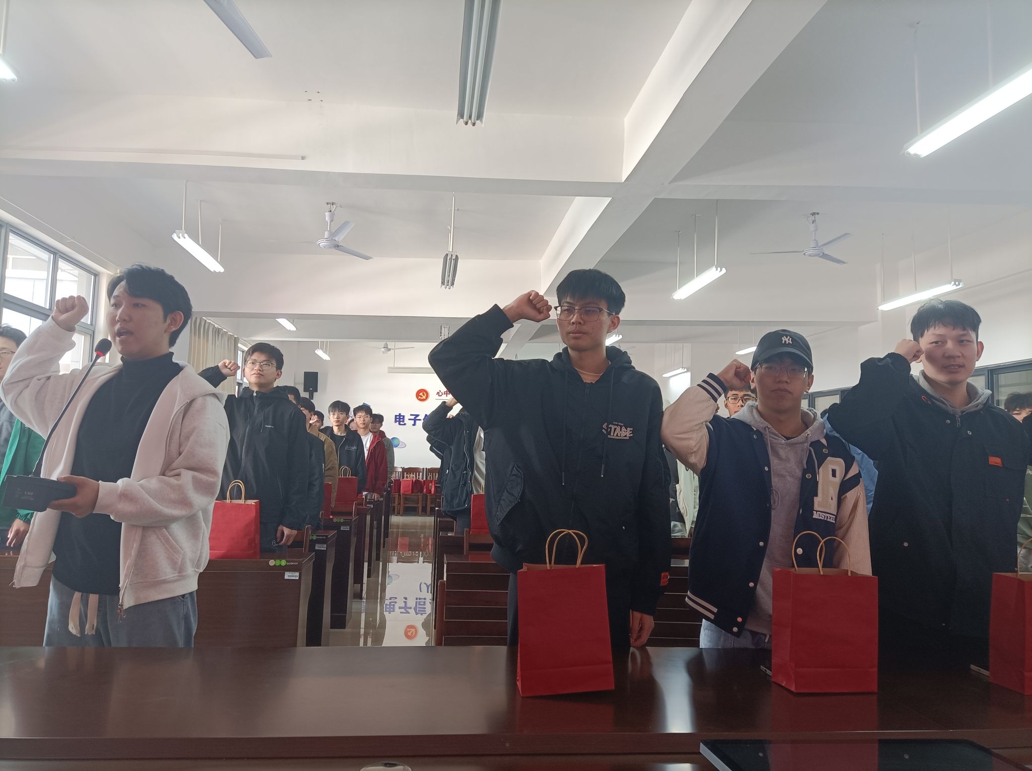 全体考生在大会上庄严宣誓,表达了他们对考研的决心和信心。他们将以最佳的状态迎接挑战,为实现个人梦想和学院荣誉而努力拼搏。随后,教师代表为全体考研学子分发备考礼包,祝福同学们旗开得胜,金榜题名。