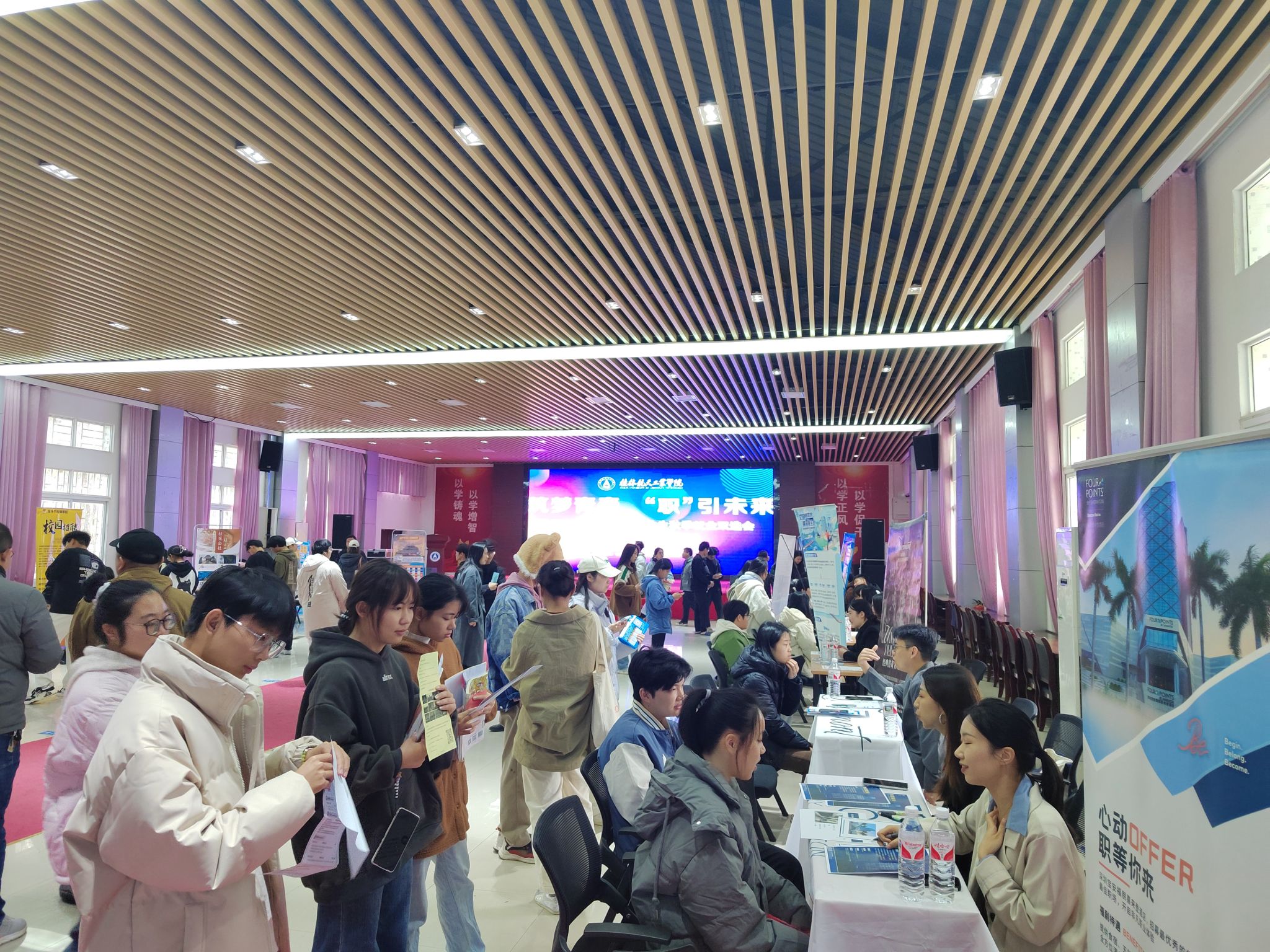 本次招聘会邀请了中企世华洋(天津)船舶管理有限公司、福建瑞尊酒店管理有限公司等15家区内外优质用人单位入校招聘。此次入校招聘的用人企业提供了涵盖人力资源管理、酒店管理、国际商务等专业的500余个就业岗位。本次招聘会吸引了近600名2025届毕业生到场与用人单位沟通交流、投递简历、了解就业趋势、寻找就业机会。到场的2025届毕业生手持精心准备的简历,积极与用人单位互动,主动了解企业需求、寻找适合自己的求职创业机会。