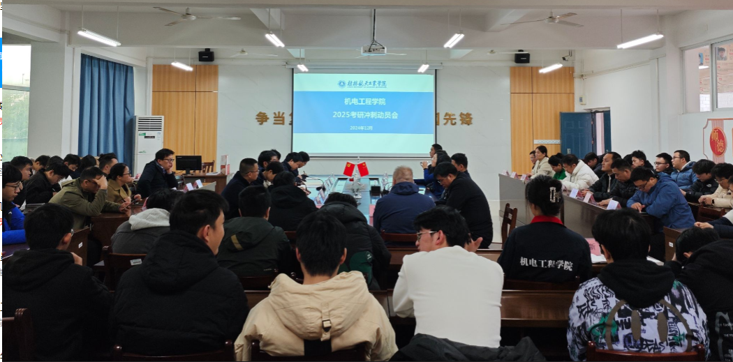 坚定考研学生信心,激励考生在最后的冲刺阶段全力以赴,12月10日,机电工程学院在巡天楼229会议室举行2025届考研冲刺动员会。学院相关负责人、考研帮扶教师、毕业班辅导员以及2025届考研学生代表参会。