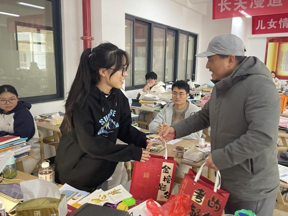 19日下午,计算机科学与工程学院领导和老师齐聚考研自习室,为奋战中的学子们送上了一份饱含心意的礼物和诚挚的祝福。这些礼物承载着“乐事将至”、“心想事‘橙’”、“好运旺旺”等美好祝愿,期望他们能够取得佳绩。