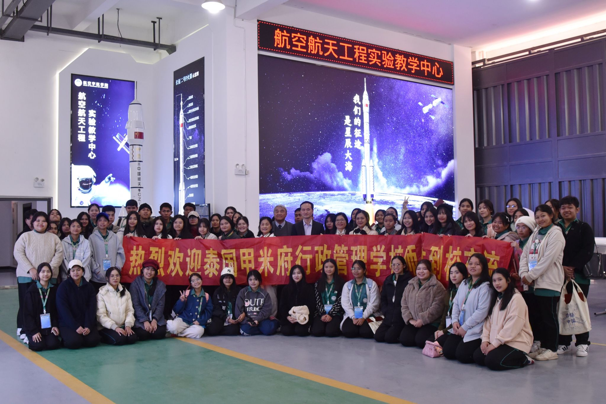 欢迎仪式在飞天楼520会议室隆重举行,研学团领队、我校客座教授Dr.Janchai Yingprayoon(钟赞才)博士致辞,他对学校精心周到的安排表示感谢,对两校之间进一步加深了解、加强合作充满了期待。我校国际交流处负责人对研学团到来表示欢迎,回顾了学校与泰国甲米府的合作历程,希望研学团师生通过此次活动,能进一步体验我校航空航天办学特色,把此次研学经历更多地分享出去。同时,学校欢迎他们毕业后到我校继续深造。