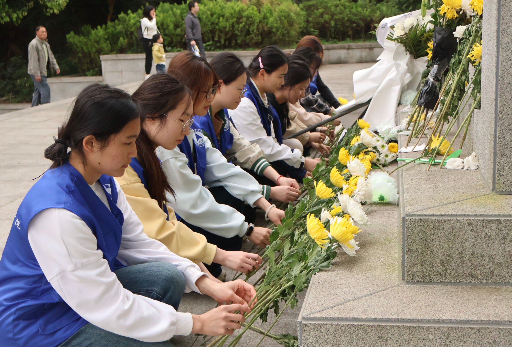 上午9时,庄严肃穆的祭扫活动在桂林市七星公园烈士纪念碑前举行。在苍松翠柏的环绕下,师生代表整齐列队,举行“传承伟大精神·凝聚民族力量”主题纪念仪式。活动现场,全体人员肃立默哀,深切缅怀为民族解放事业英勇献身的革命先烈。通过革命事迹宣讲、敬献鲜花、集体鞠躬等环节,师生们接受了一次深刻的精神洗礼。2022级自动化3班李俊林表示:“每一次对历史的回望,都是为了更好地出发。我们要让红色基因融入青春血脉,转化为奋进新时代的强大动力。”