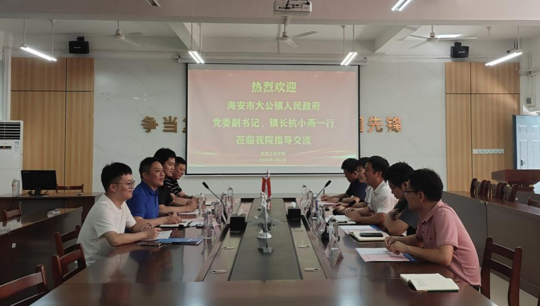 7月4日,由机电工程学院和广西特种工程装备与控制重点实验室、广西贵金属新材料先进流程制造工程研究中心聚力,邀请南通海安市大公镇政府、南通凌志环保科技有限公司,组织召开了政校企交流座谈活动,会议由学院党委书记杨华主持。