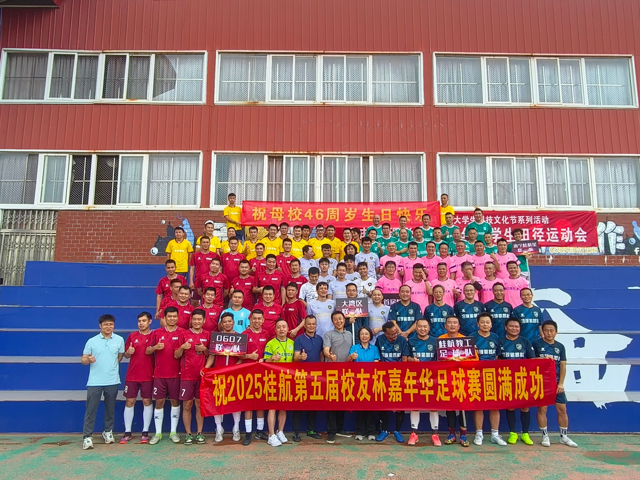 之后,由足球爱好者校友分会组织的第五届校友杯嘉年华足球赛如期举行。赛前,来自大江南北的近120名校友用“桂航,加油”表达了对母校的美好祝福。本次校友杯嘉年华足球赛共有6支参赛队伍,分别是校队联队、大湾区联队、南宁联队、0607联队和1016联队。经过3轮比拼,最终0607联队、1016联队分获冠亚军。