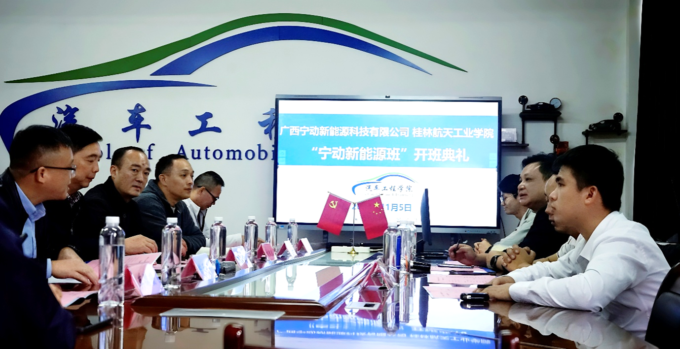 为深化产教融合、校企协同培养高素质应用型新能源汽车人才。11月6日下午,汽车工程学院与广西宁动新能源科技有限公司联合组建的“宁动新能源班”开班典礼在汽车工程学院会议室顺利举行。广西宁动新能源科技有限公司董事长莫迪、校企部主任黄江宏、就业主任伍妍、宁德时代讲师梁家滔及我校教务处主要负责人、汽车工程学院全体领导班子、校内指导教师代表、2022级宁动新能源班全体学生到场参加典礼。典礼由汽车工程学院负责人主持。