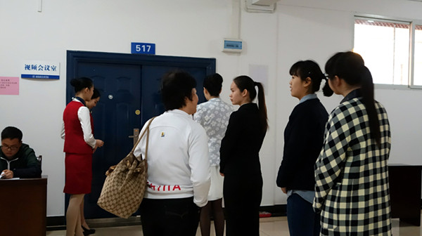在3月28日我校航空服务专业招生现场,家长和考生们冒着大雨早早的来到了考场,在门前焦急的等待着。一位考生告诉记者,他一大早从桂林郊区县连转了三趟车来到桂航,淋了点小雨,但是想着今天的考试是接近梦想的第一道关卡,他就浑身有劲。还有几位考生是同班同学,互相结伴从柳州坐高铁过来参加面试,兜兜转转差点迷了路,最后在好心人的帮助下顺利到达学校。