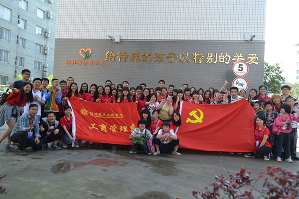 为培养学生党员“有爱、互助、奉献”的精神,5月8日下午,工商管理系学生第二党支部40多名学生党员前往桂林市培智学校开展了“同一片蓝天下”党员爱心公益活动。