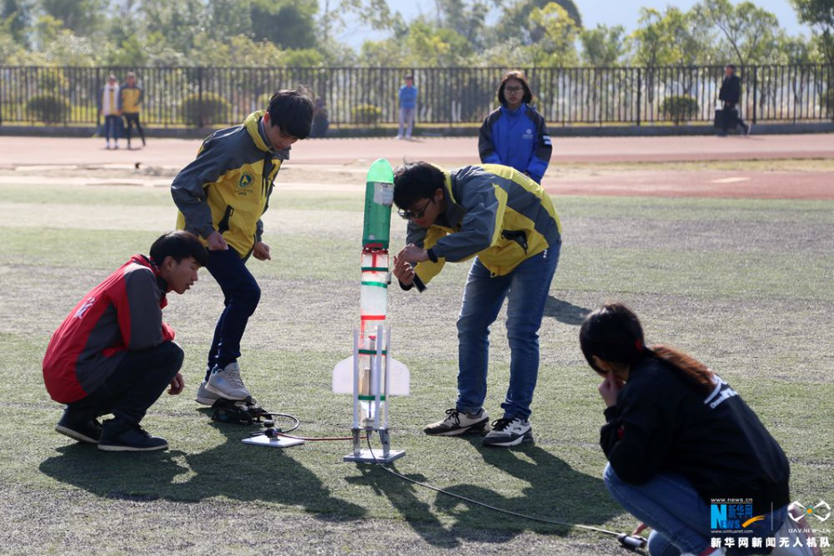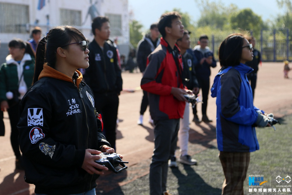 同学们在进行无人机飞行表演。新华网发 杨永昌摄
