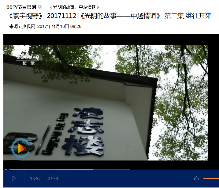 近日,中央电视台在我校取景拍摄的纪录片《光阴的故事-中越情谊》正式在央视播出,欢迎广大师生观看。